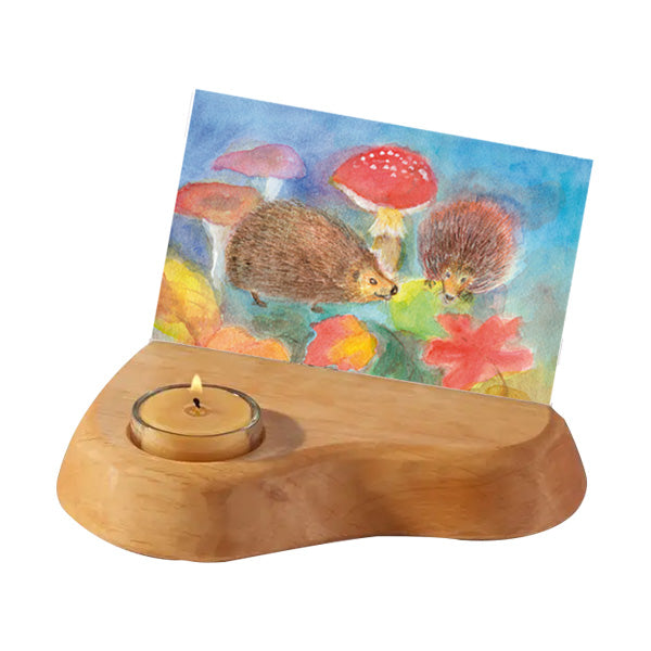 Wooden Picture / Card Holder with Glass Insert and Beeswax Tealight Candle
