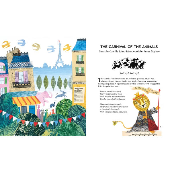 Get ready for six captivating stories that inspired some of the world’s most famous music. A Symphony of Stories is a beautifully illustrated collection that brings classical masterpieces to life through vibrant retellings and stunning handmade collage artwork. From Saint-Saëns’ Carnival of the Animals to Stravinsky’s Firebird, each tale blends international folklore with visual wonder.