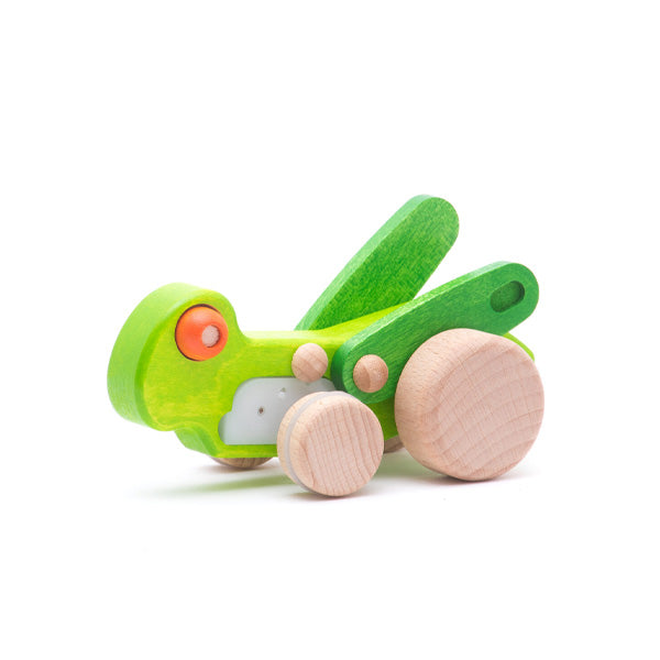 This cheerful wooden grasshopper (or cicada!) is bursting with character and clever design. Simply pull it back and let go—the smart internal gearbox sends it zipping and whirring across the floor, with its long legs bouncing up and down in a wonderfully lifelike motion. Made from smooth, tactile wood and finished with bright, non-toxic paints, it’s a joy to hold, play with, and watch in action. A brilliant way to spark curiosity, encourage movement, and bring a little bug-inspired fun to playtime. A guaranteed favourite for little nature lovers.