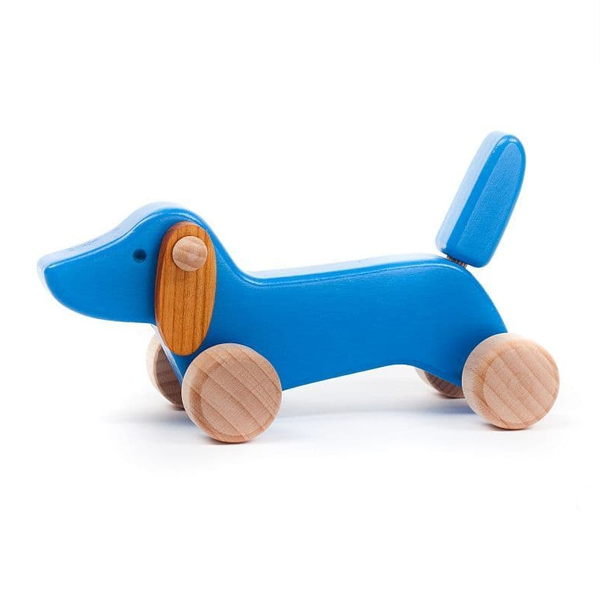 This charming little dachshund is full of personality and perfect for tiny hands. Crafted from smooth wood and just the right size for toddlers, it rolls effortlessly across the floor, ears flapping with every push. Whether it’s leading a make-believe adventure or simply trotting alongside your child, this pup brings joy, movement, and endless smiles. A delightful first companion that’s always ready to play.
