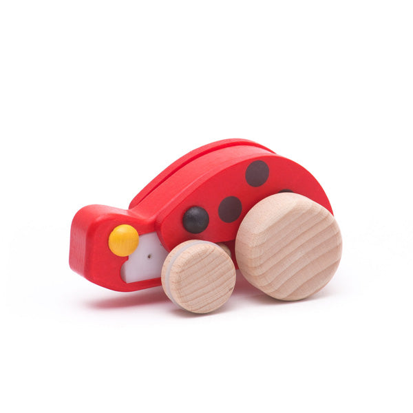 This colourful wooden ladybird is full of charm and movement. Just pull it back and release—its clever gearbox mechanism sends it scurrying and whirring across the floor, with wings that bob up and down as it goes. Made from smooth, tactile wood and finished with child-safe, non-toxic paints, it’s a delightful way to introduce motion and cause-and-effect play. With its cheerful design and lively action, this little bug is sure to become a fast favourite for curious young explorers.