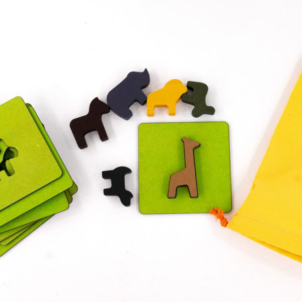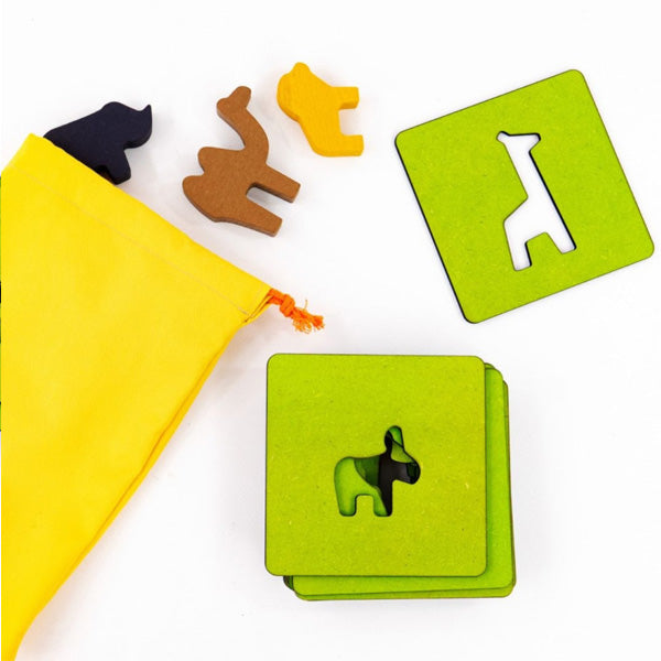 Children can match by sight or test their sense of touch by reaching into the bag and guessing the animal shape. Perfect for solo or group play, it encourages focus, imagination, and hands-on learning.