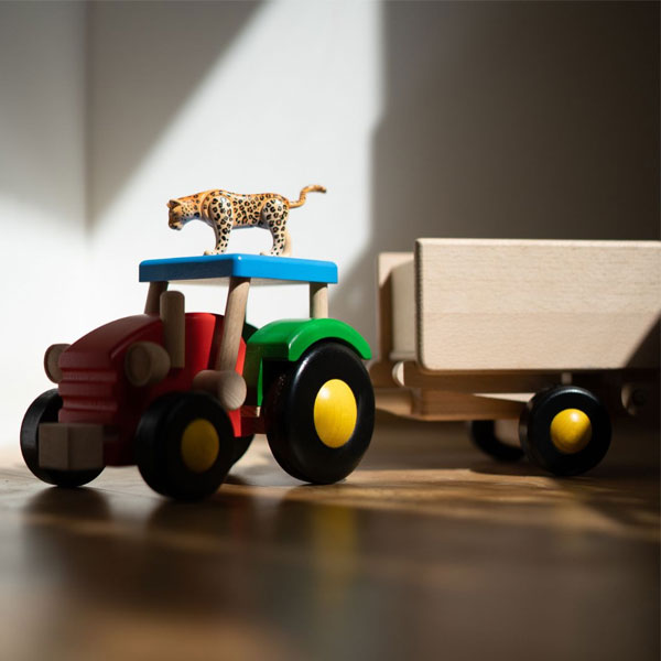 This cheerful wooden tractor with wagon is ready for big farmyard adventures, blending sturdy craftsmanship with a simple, charming design that little farmers will love. Robustly built for busy, imaginative play, it helps children build coordination, gross motor skills and growing confidence. The wagon is perfect for loading up treasures to create lively scenes and storytelling fun. Made entirely in Europe from sustainably harvested Polish wood and finished with certified, non‑toxic, natural‑ingredient paints that meet strict EU and US safety standards, it’s a safe, eco‑friendly classic.