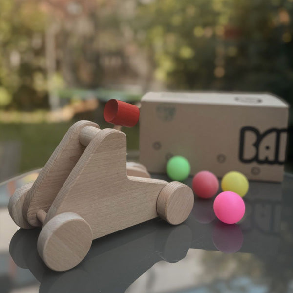 Unleash your child’s inner engineer with this classic wooden catapult, a brilliantly simple toy that turns playtime into a hands-on physics lesson. Using the power of a rubber band to launch ping pong balls, it’s perfect for exploring force, motion, and trajectory in a fun, interactive way. With four balls included, children can load, aim, and fire with a satisfying press, developing fine motor skills, hand-eye coordination, and precision along the way. Whether playing solo or in friendly competition, it’s a fantastic way to spark curiosity, encourage focus, and introduce the basics of physics through joyful, active play.