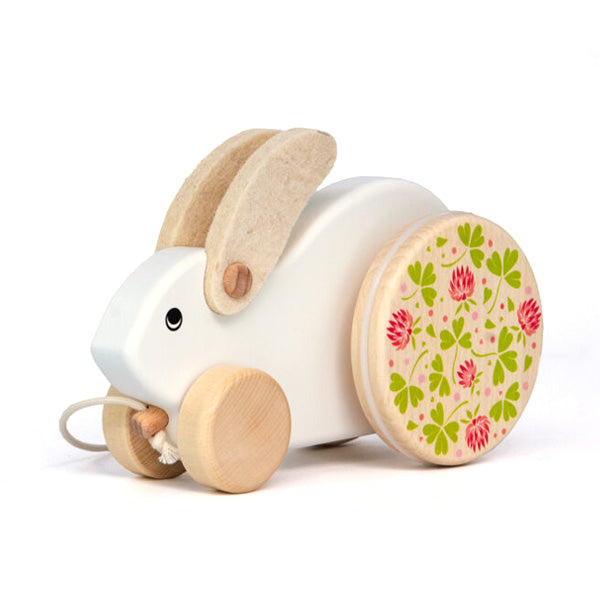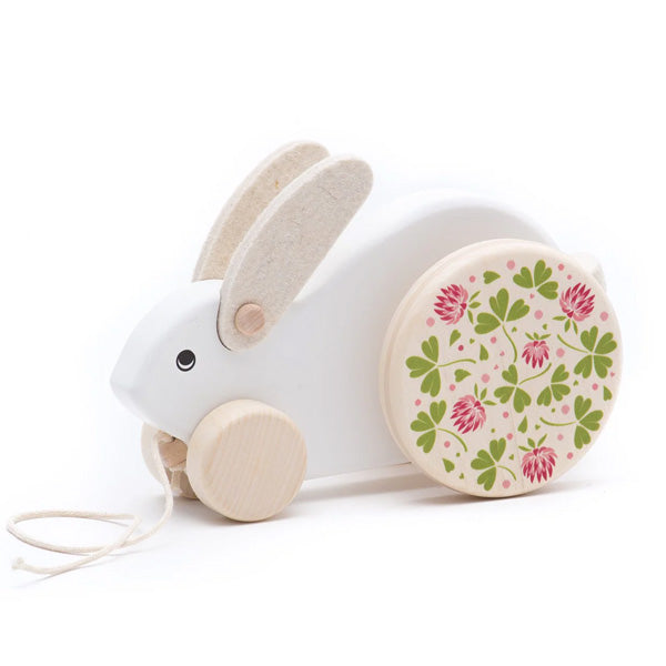 Bajo Pull Along Wooden Rabbit White