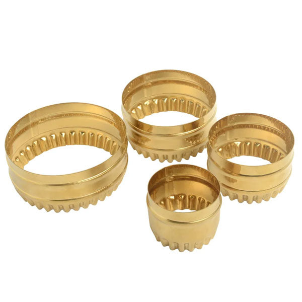 The Eddingtons Set of 4 Round Brass-Coated Fluted Cookie Cutters brings classic British baking into your kitchen. With traditional fluted edges in four versatile sizes, they’re ideal for cutting biscuits, scones, pastries, and of course the bases and lids of festive mince pies. Finished in a timeless brass coating and complete with a handy hanging ring to keep them neatly together, this set combines everyday practicality with enduring charm, an essential for any home baker.