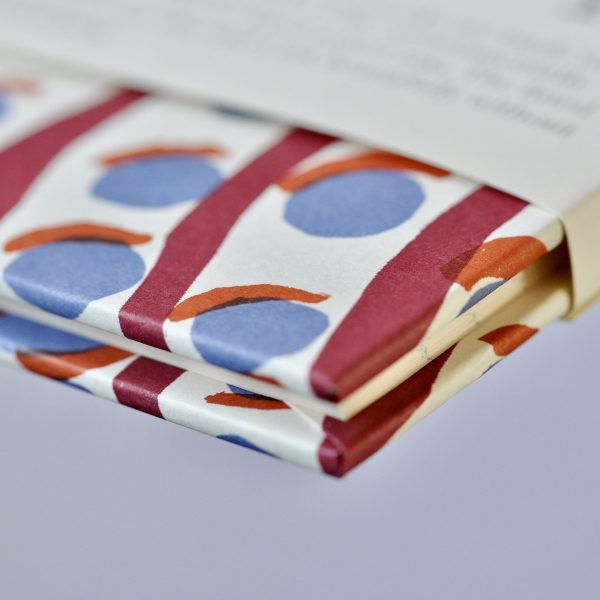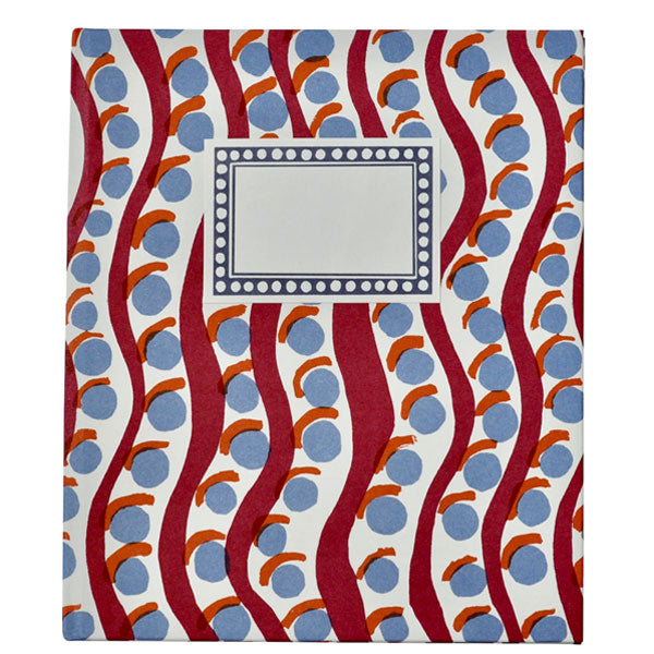 Cambridge Imprint Large Hardback Notebooks are inspired by the slim patterned German Insel-Bücherei books of the inter-war period. They have 80 pages of lined cream paper, sewn properly and bound into a slim, light hardback notebook, covered in Cambridge Imprint's patterned paper, that opens completely flat. Each notebook measures 20.5 cm tall by 17.5 cm wide. The front cover has a rectangular cream label.