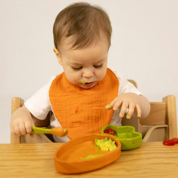 Brighten up mealtimes with Oli & Carol’s Cathy the Carrot playful plate and spoon set handcrafted from sustainable Hevea wood, giving a second life to the trees that once brought us natural rubber toys. Lightweight, easy to grasp, and finished with a silky-smooth surface that’s gentle on baby gums and teeth, it’s designed to grow with your child from first solids to toddler snacks. Each piece is uniquely handmade and hand-painted with natural pigments to highlight the wood’s beautiful grain while adding a fun, colourful touch. Free from phthalates, plastics, and toxins, and impact-tested for safe use, it’s a gift-ready favourite for conscious families who value safety, sustainability, and joyful design.
