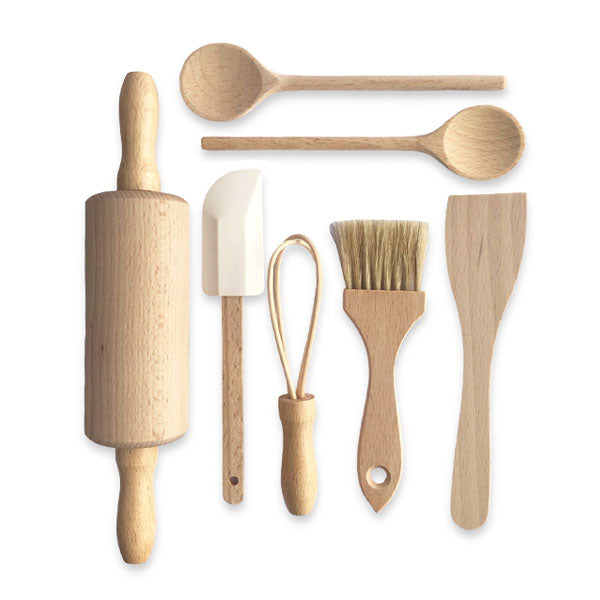 Now the youngest members of the family can join in the fun of cooking with this charming set of mini wooden utensils. Crafted from untreated beechwood, the set encourages imaginative role play and helps children develop social skills while learning through play. Complete with a whisk, rolling pin, two cooking spoons, dough spatula, wooden spatula and pastry brush, it’s a delightful way to inspire budding little chefs in the kitchen.