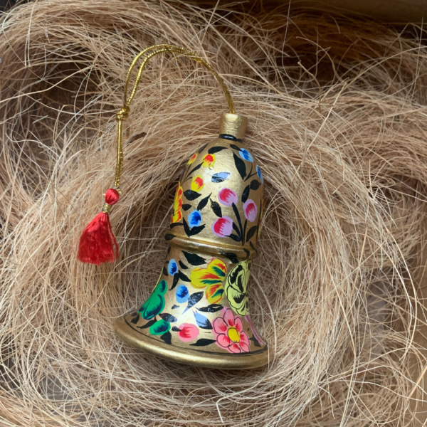 Dalit Gold Floral Bell Hand-Painted Hanging Christmas Decoration