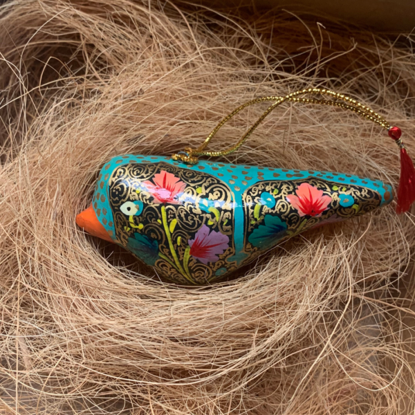 This delightful Turquoise Bird Christmas decoration is individually handmade using papier-mâché and hand painted with traditional Kashmiri designs. Designed to last for many Christmases to come, it’s both durable and beautifully detailed, perfect for adding a touch of handcrafted character to your seasonal decorations. A thoughtful choice for eco-conscious celebrations this single decoration is approx 3″ and is crafted with care and conscience from ethical sourcing and sustainable practices.