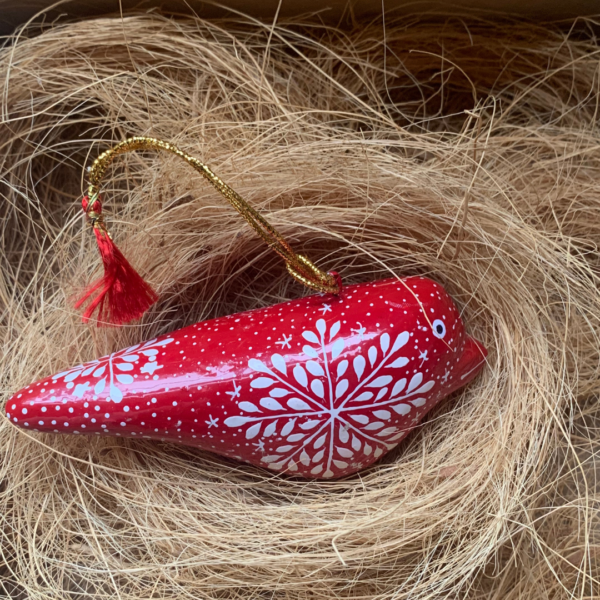 This delightful Christmas snowflake bird is individually handmade using papier-mâché and hand painted with traditional Kashmiri designs. Designed to last for many Christmases to come, it’s both durable and beautifully detailed, perfect for adding a touch of handcrafted character to your seasonal decorations. A thoughtful choice for eco-conscious celebrations this single decoration is approx 3″ and is crafted with care and conscience from ethical sourcing and sustainable practices.