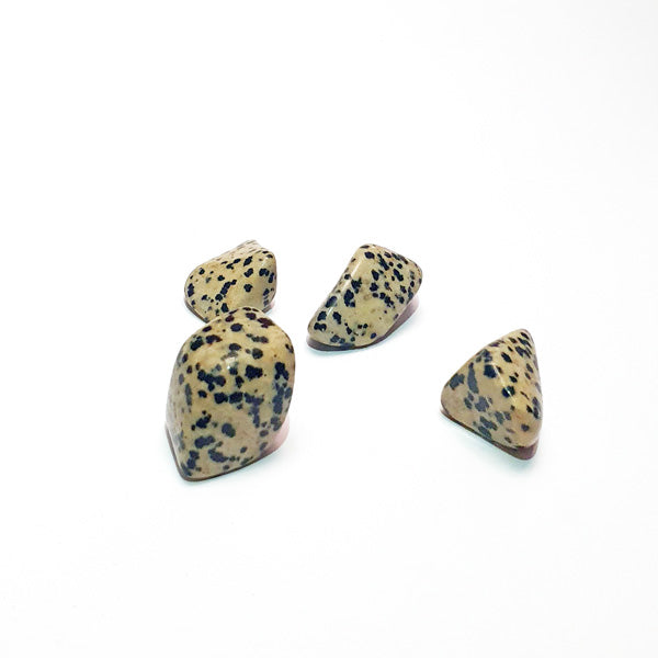 Dalmatian Jasper is instantly recognisable for its playful black spots, reminiscent of its namesake dog breed. Made from a Feldspar and Quartz mineral mix, is commonly used to promote courage and wisdom. Each stone carries its own unique markings formed by natural impurities. Measuring approximately 2–3cm, these pieces are sold individually and chosen at random.