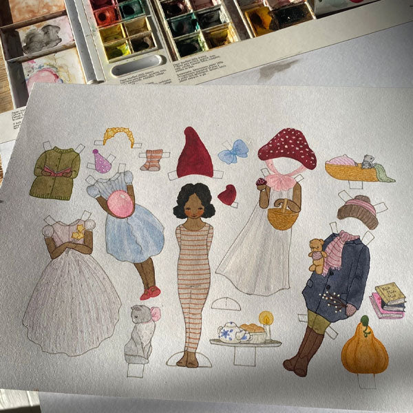 Say hello to Iben, a charming cut-out paper doll with a love for tea parties, good books, and her cuddly cat, Mis, who never leaves her side. Beautifully hand-painted in Denmark and printed on sturdy card, Iben is part of a delightful duo of dress-up dolls, each with their own personality and style. Simply cut her out by hand and dress her up for all sorts of occasions: Christmas, New Year, birthdays, or just a cosy afternoon with friends. Her outfits are interchangeable with Mona's, the other doll in the collection, so the fun never ends. other doll in the collection, so the fun never ends. A lovely blend of storytelling, creativity, and hands-on play, perfect for children who enjoy crafting and imaginative adventures.