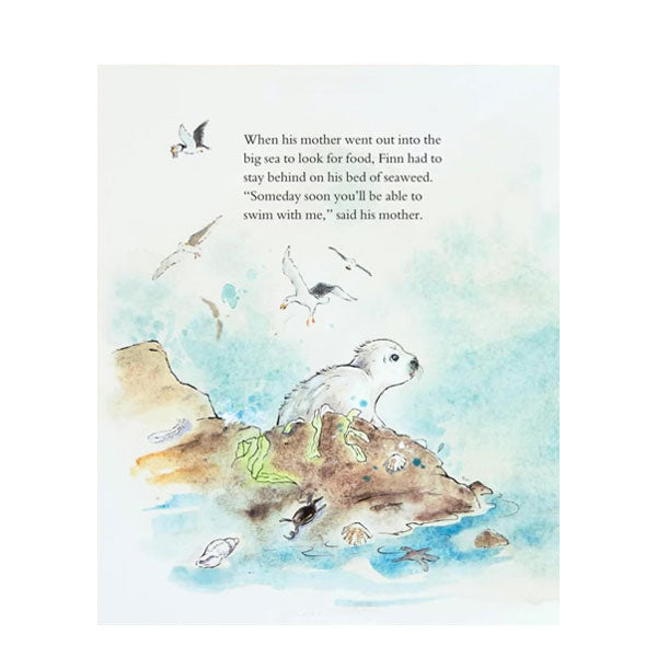 Finn is a baby grey seal. His mother tells him that one day he will swim in the sea, but the sea looks far too big to little Finn. He likes the rock pool, where he watches anemones and crabs. Finn's friend Sula loses her white fur and plunges into the water, but Finn still thinks the sea is far too big and scary. Then one day a wave sweeps Finn off the rocks! Will he finally overcome his fears and find where he truly belongs? Finn the Little Seal is a heartwarming story about growing up and embracing new experiences. Set in Scotland's beautiful Outer Hebrides, artist Sandra Klaassen captures the dramatic seascape in her soft, detailed watercolour illustrations.