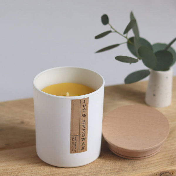 Five Bees Yard Beeswax White Container Candle with Wooden Lid