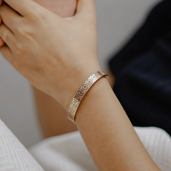 This handcrafted copper bracelet combines traditional metalwork with Forrest & Love's original Mosaic pattern, symbolising balance and connection. Known for its energy-balancing properties, copper makes this unisex bracelet more than an accessory, it’s a daily companion for inner harmony and everyday style.