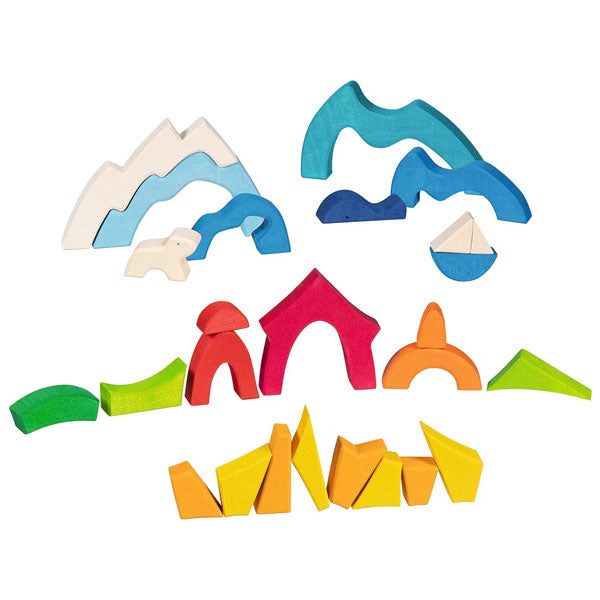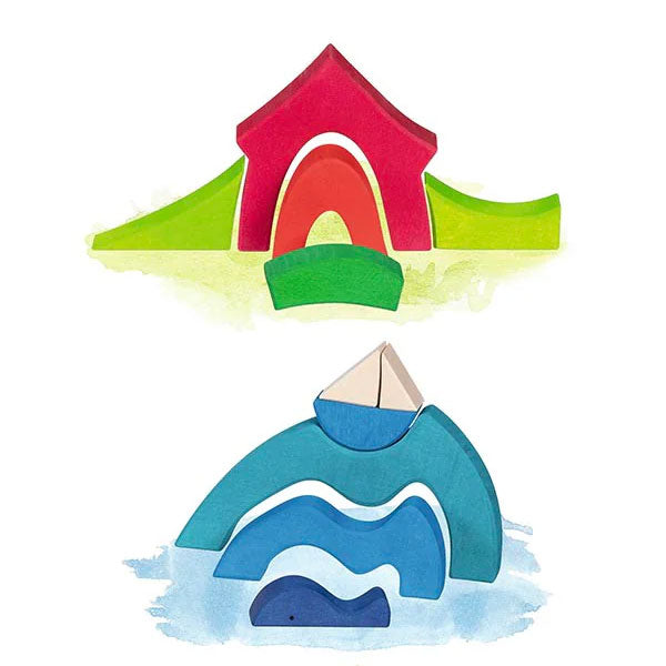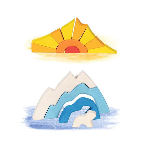 Lovingly made in Europe from smooth, tactile wood, these heirloom puzzle blocks are finished with vivid colour washes that highlight the natural grain, creating a toy that is as beautiful to look at as it is to play with. Perfectly sized for little hands, the blocks encourage motor skills, colour recognition and endless creativity. Children will delight in building caves, landscapes and creative structures - and with a bit of luck, polar bears and whales might pay a visit....