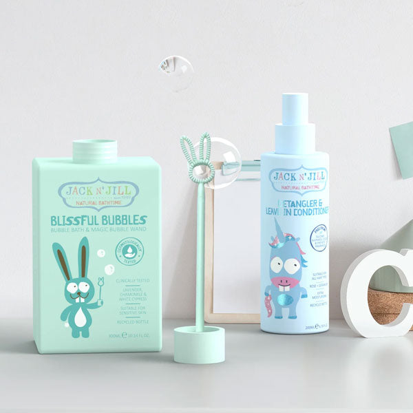 The easiest way to get babies and kids into a good bath routine is to make it fun! They’re not worried about sticky hair or nappy smells, they just want something to enjoy. Jack N’ Jill Blissful Bubbles, with its cute bunny bubble wand, creates gentle, chemical‑free bubbles that turn bath time into a fun and magical moment.