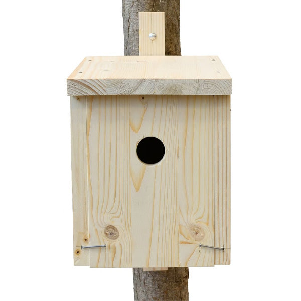 The size of the entrance hole is 35 mm, ideal for tits, sparrows, redstarts and nuthatches.