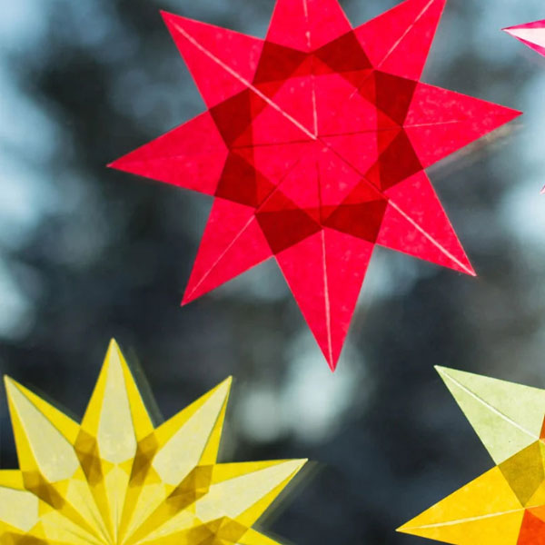 Stronger than silk paper, with a waxed, glossy finish, kite paper is perfect for folded window stars, paper lanterns, and seasonal transparencies. Sturdy enough to handle with ease yet beautifully translucent, it lets the light shine through your creations with a magical glow. With 100 sheets in every block made up of 5 festive colours - 01 blue; 03 dark green; 05 yellow; 10 red; 12 white - there’s plenty to spark joy, whether you’re crafting with little ones, adding cheer to festive displays, or simply indulging your creative streak. A joyful essential for every craft cupboard.