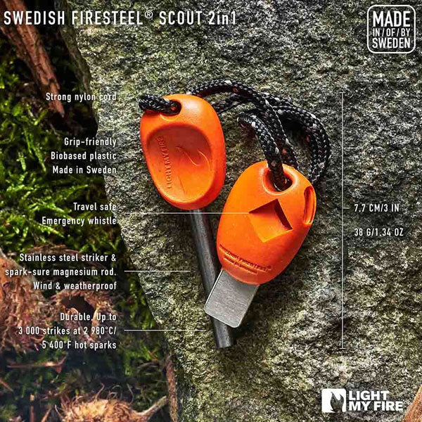 Designed with a grip‑friendly handle and built‑in emergency whistle, it’s safe, practical and travel‑ready. Made from recycled steel and durable biobased plastic in Sweden, this fire starter is built to last and adds a real sense of adventure to camping trips, back‑garden adventures, or family hikes.