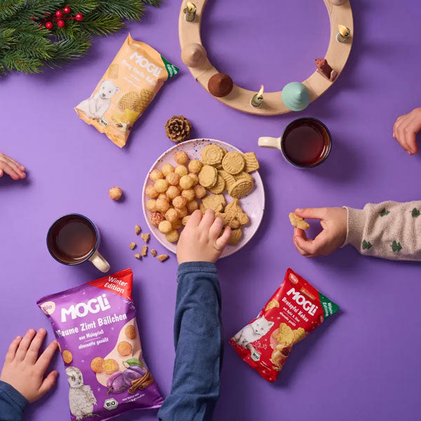Light and crispy, MOGLi Plum Cinnamon Balls bring a true Advent flavour to every snack break. Made from puffed cornmeal and blended with fruity plum and a delicate touch of cinnamon, they’re vegan, palm‑oil free and crafted with just a handful of natural ingredients – no artificial flavourings or unnecessary additives. Mildly sweet and perfectly suited to children, these organic little bites will delight the whole family, whether enjoyed at home while baking, tucked into a pocket for the Christmas market, or savoured as a cosy pick‑me‑up after a winter walk.