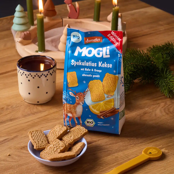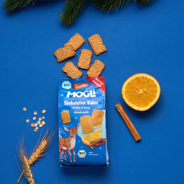 A festive classic, these MOGLi Spekulatius biscuits are gently spiced with winter flavours and a delicate hint of fruity orange. Organic, vegan, and sweetened with agave, they’re wonderfully crunchy and free from palm oil – the perfect little treat for little Advent moments full of Christmas magic.