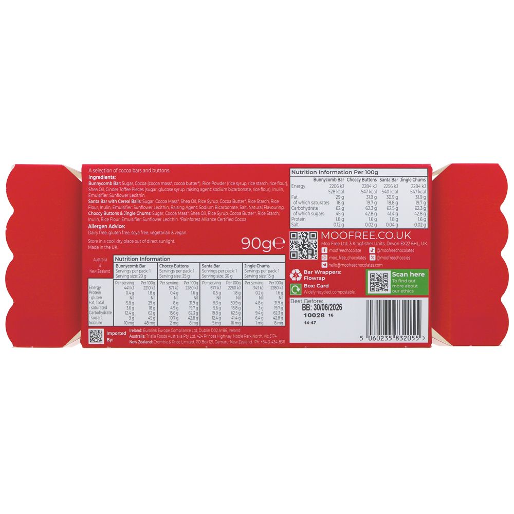 Make Christmas extra special with Moo Free Cracker Selection Boxes. These scrummy crackers are filled with dairy-free, gluten-free, soya-free, and vegan-friendly chocolate treats. You'll find the following Christmas treats inside: