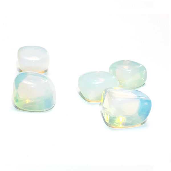 Opalite is a beautiful, man-made opalescent glass. Each piece is smooth with a soft, glowing appearance that shifts between milky and iridescent tones. Though not a natural stone, Opalite is believed to promote emotional clarity, enhance communication, and bring a sense of calm and serenity. Measuring approximately 2cm, these pieces are sold individually and chosen at random.