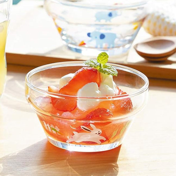 This charming children’s bowl is perfectly sized for puddings, fruit, and little portions. Adorned with a sweet rabbit print, it’s designed to delight while supporting your child’s growing independence. The gently curved shape fits snugly in small hands, helping little ones serve themselves with confidence. Made from tempered glass, it’s more resistant to cracks and chips than standard glassware, offering peace of mind while still encouraging gentle handling. Rather than keeping glassware out of reach, this bowl invites children to experience natural materials and learn the value of care and responsibility from an early age, all while enjoying a joyful, beautifully crafted piece at the family table. Coordinates with the Rabbit glasses available in two sizes.