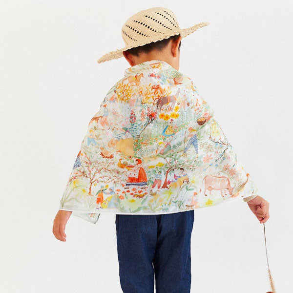 Let your child explore the wonders of the farm with this beautifully illustrated, limited edition Seek & Find playsilk. Designed to spark open-ended imaginative play, it features a vibrant farm scene and comes with a card of suggestions for children to easily begin the seek and find fun. Made from 100% pure mulberry silk and printed using non-toxic, earth-friendly dyes, it’s delightfully floaty, soft to the touch, and gentle on little hands. A perfect companion for storytelling, sensory play, or nature-inspired adventures.