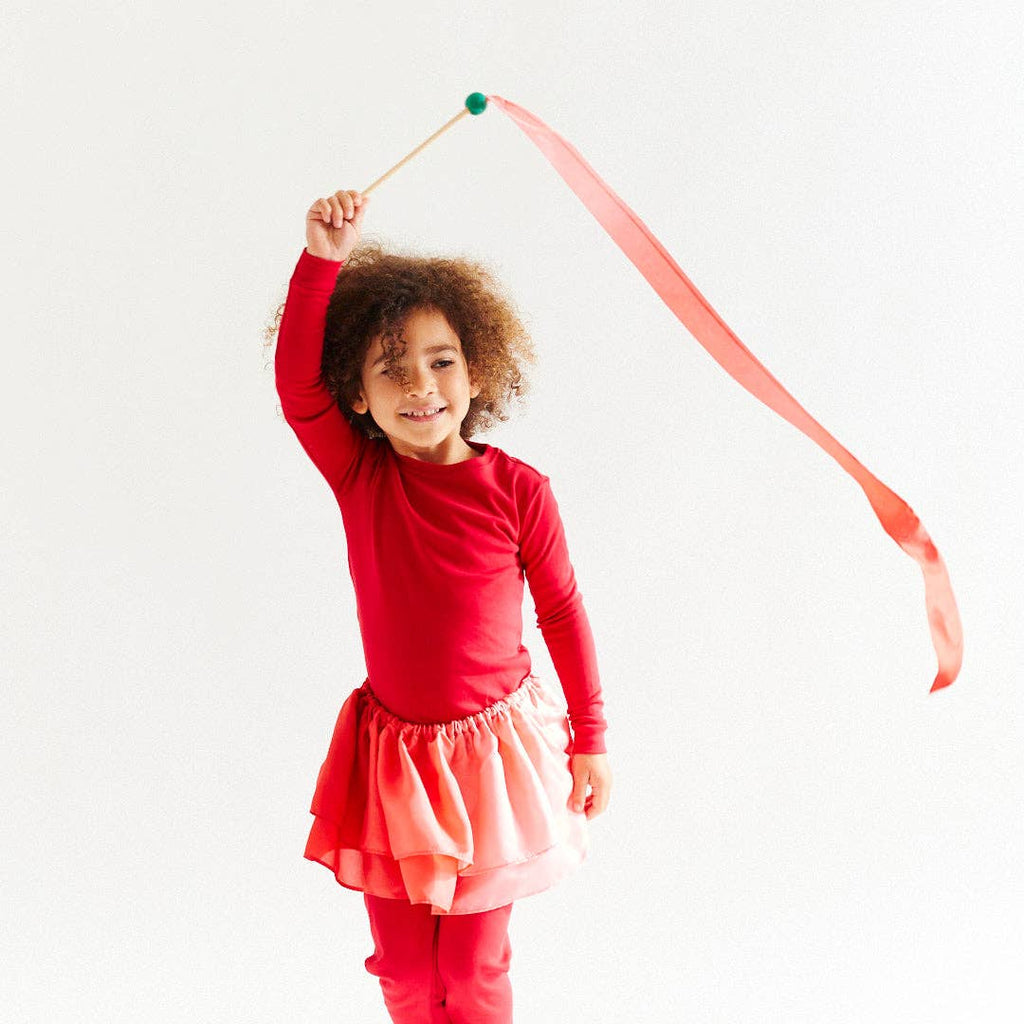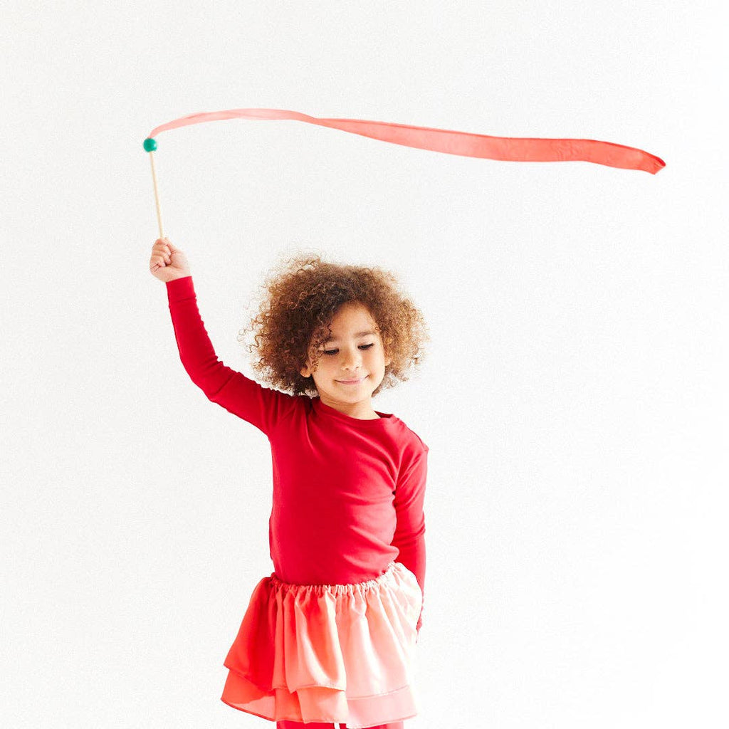 Sarah's Silks Mini Strawberry Streamer comes with a silk ribbon attached to a wooden wand. It invites children to move, dance, twirl and run, sparking their imagination while boosting coordination and body awareness. The shorter length of the wand is easier for young children to handle, making it a perfect toy, gift, stocking filler, or party favour for little ones under five.