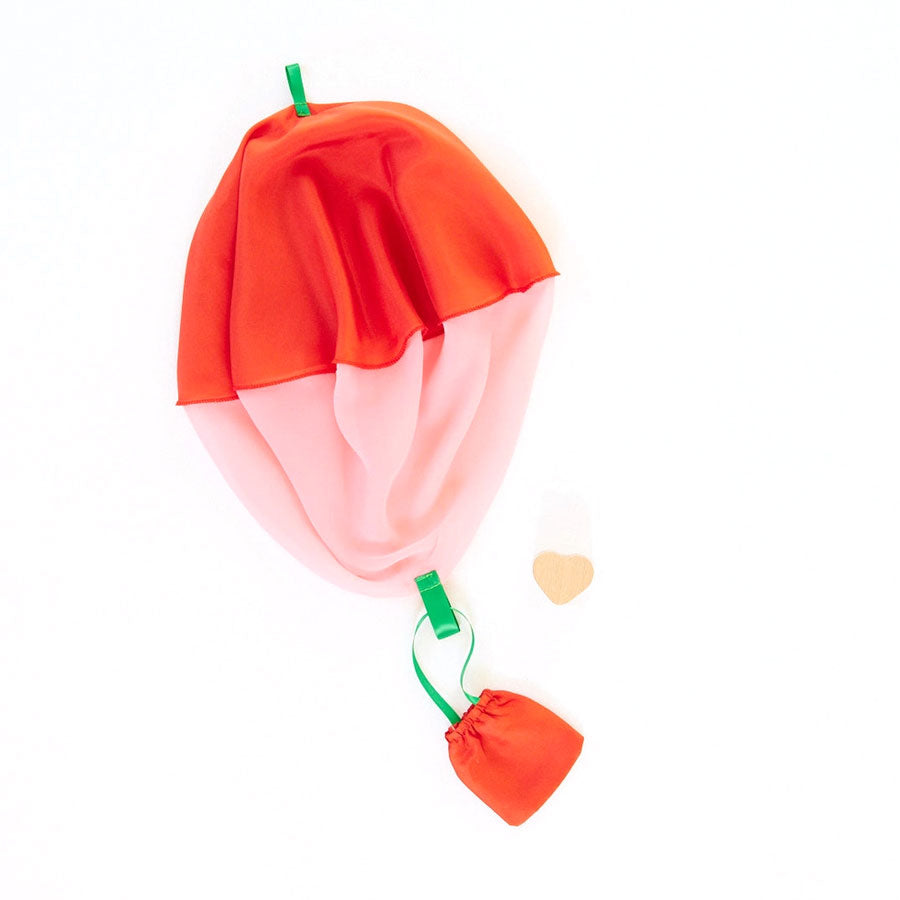 Crafted from pure mulberry silk, this lightweight toy floats through the air with ease. Toss it up and watch it gently float back down. Comes with a charming wooden heart that fits perfectly inside the little pouch, which will also fit a small toy ready for an exciting parachute adventure. Perfect for curious children ready to explore and imagine! It sparks sensory excitement with the bright colours and motion, supports motor skills and hand-eye coordination, teaches timing through launching and catching, and invites creative storytelling and role-play adventures.
