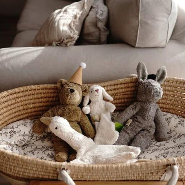 Handmade in Europe from GOTS-certified organic cotton and filled with pure organic sheep’s wool, the Senger Baby Sheep is a soft friend designed to soothe and support your little one. Its small size is perfect for tiny hands and on-the-go cuddles, while the plush fur, velvety limbs, and sweet embroidered face offer gentle sensory comfort. The wool filling is perfect for cosy snuggles year-round, and also helps absorb and retain the familiar scent of baby and parent, creating a deeply reassuring presence that helps settle restless moments. Ethically made from sustainable materials, this timeless soft toy is a beautiful, plastic-free gift for families who value natural living and heartfelt craftsmanship.