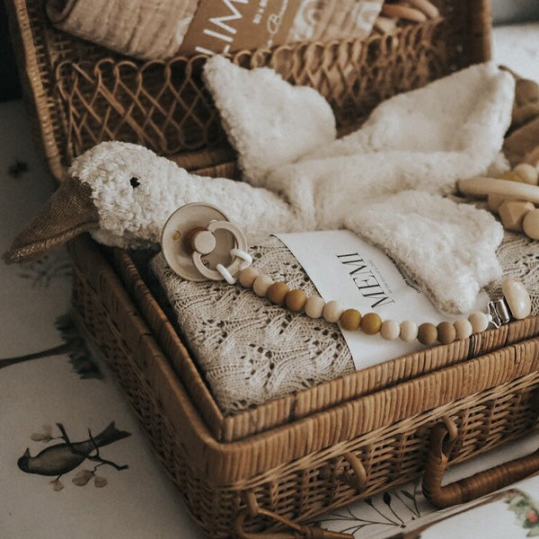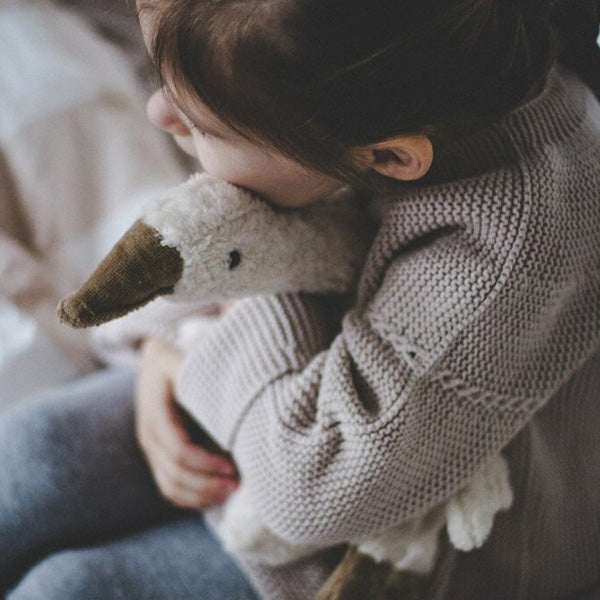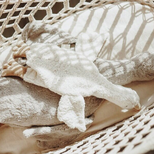 Lovingly handcrafted in Europe from GOTS-certified organic cotton and filled with pure organic sheep’s wool, the Senger Organic Goose Warming Pillow is a soft, cuddly friend designed to nourish your little one's senses and bring gentle comfort day or night. Hidden inside its zippered tummy is a removable, sealed organic grape seed pad that can be warmed in the oven or cooled in the fridge, perfect for easing sleeplessness, teething pain, tummy aches, or simply adding a cosy, weighted feel at bedtime. As little ones grow, it becomes a favourite bedtime warmer on chilly nights, offering snuggly reassurance well into toddlerhood and beyond. With its sweet embroidered face, tactile fur, and baby-safe design, this multi-functional lamb is more than a cuddly toy, it’s a beautiful, plastic-free gift for eco-conscious families who value natural care, quality and connection.