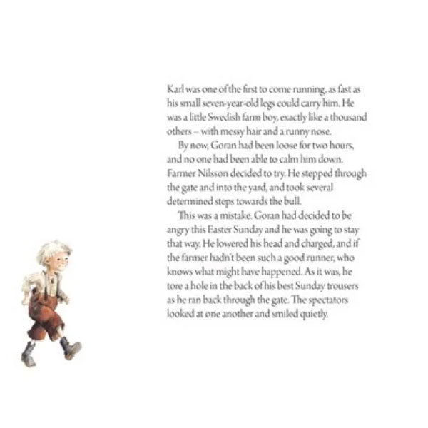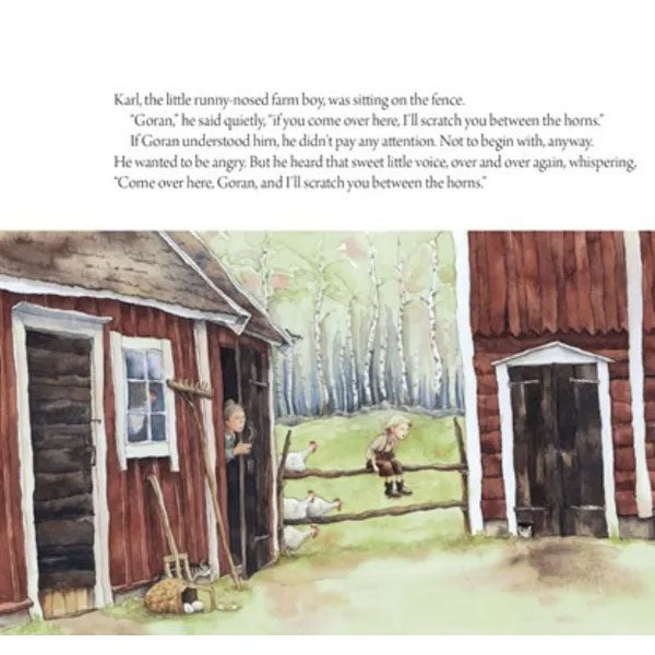 A charming traditional tale from Astrid Lindgren, this beautifully illustrated edition follows Karl, a small but brave farm boy with a clever idea for calming an angry bull. When Goran the bull charges out of his stall and chaos spreads through the village, crowds gather but no one can soothe him — until Karl steps forward with unexpected kindness and courage. With Marit Törnqvist’s warm, nostalgic artwork capturing a Swedish village of long ago, this classic story carries a gentle message about empathy, bravery, and never underestimating others.