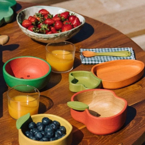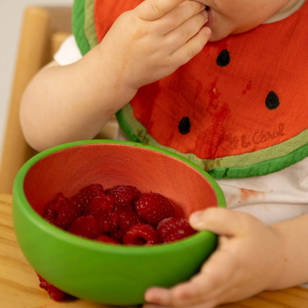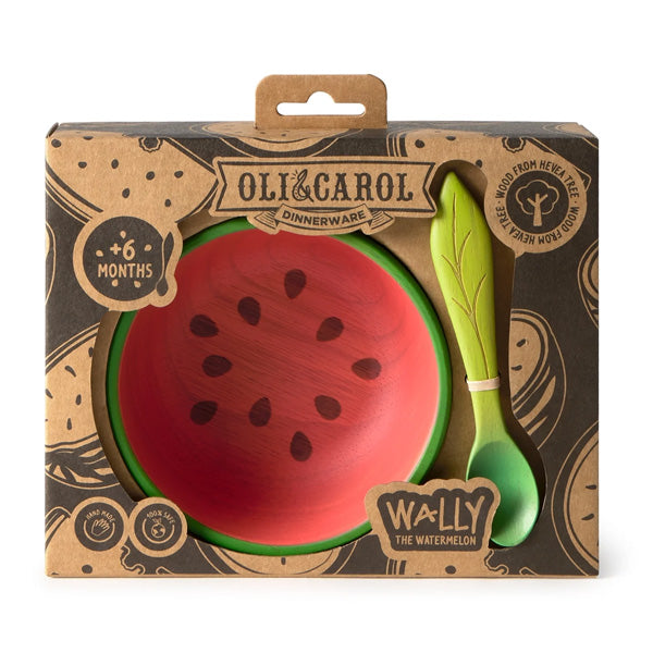 Brighten up mealtimes with Oli & Carol’s Wally The Watermelon charming bowl and spoon set handcrafted from sustainably sourced Hevea wood, giving a second life to the very trees that once brought us natural rubber toys. Designed to grow with your little one, from baby’s first bites to toddler-sized snacks, its lightweight build, gentle curves, and silky-smooth finish are perfect for tiny hands and delicate gums. Free from phthalates, plastics, and toxins, and painted with natural pigments that let the wood’s beauty shine through, it’s a safe, stylish, and eco-conscious choice for families who cherish thoughtful design and planet-friendly living. Gift-ready and made with love.