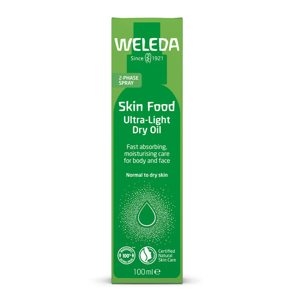 Weleda’s Skin Food Ultra-Light Dry Oil is perfect for both face and body, providing gentle hydration for normal to dry skin. This fine mist combines the refreshing lightness of a spray with the rich nourishment of plant oils and botanical extracts. Featuring pansy, organic calendula, rosemary, and chamomile, it instantly gives intensive moisture and enhances skin’s natural softness. Easy to apply, it’s non-greasy and absorbs quickly, for an instant glow and softer skin.